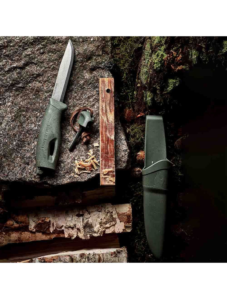 A sustainably produced bioplastic mix combining coconut shell fibers, creates a magnificent experience of texture, look and natural smell. The superior Sandvik stainless steel blade is 80% recycled steel: everything you need whether cutting rope, shaving kindling or slicing apple for the kids. The handle holds an all-weather-proof Swedish FireSteel: up to 3000strikes at 5400°F/3000°C. Light fires, ignite gas stoves, prepare meals, include the whole family and rediscover ancient skills with this fantastic multifunctional tool. Reliable durability in a timeless design. For every home, wherever you make it.