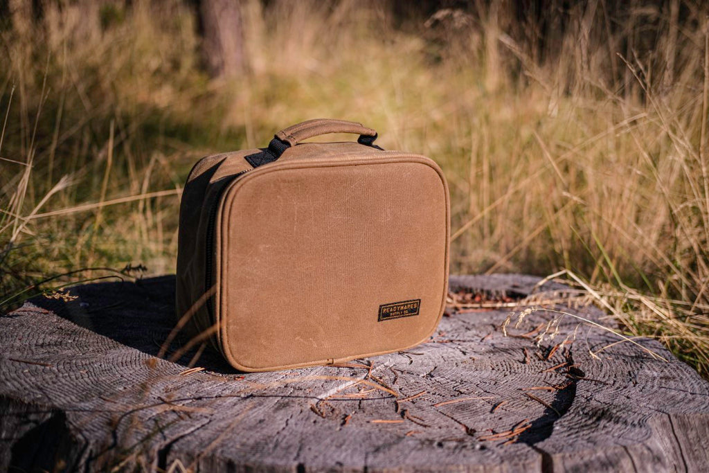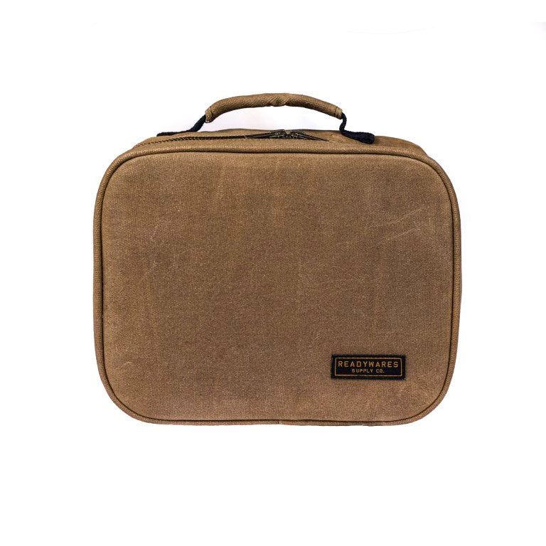 Introducing the ultimate lunch bag for hardworking professionals: our rugged waxed canvas lunch bag. Made with durable waxed canvas, this lunch bag is built to withstand the rigors of the construction site or jobsite. Whether you're working on a building project or on the go all day, this lunch bag will keep your food fresh and secure. With its ample storage space and interior zipper pocket, you can easily pack all your favorite meals and snacks. Plus, with its convenient carry handle, you can take it wherever your work takes you. So why wait? Get your rugged waxed canvas lunch bag today and fuel up for a productive day on the job!