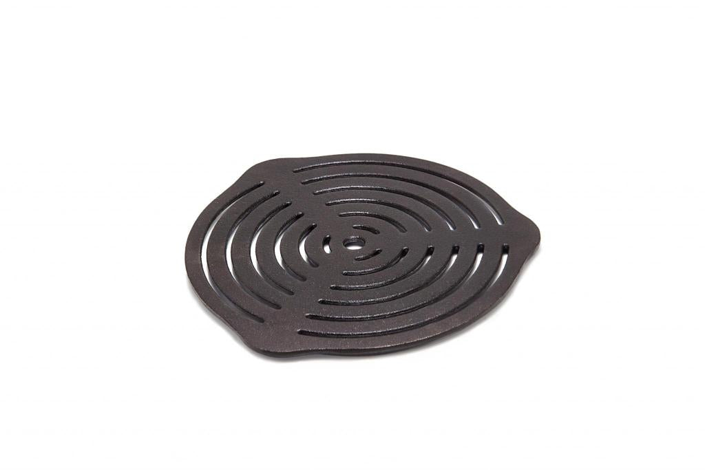 The Petromax Trivet is made of solid cast iron and provides first-class heat distribution, and allows one to bake and cook in the Dutch Ovens ft6, ft9 and ft12 without burning anything. The cast-iron trivet stands steadily on three small feet on the fire or on a table as a trivet. It makes the perfect grill pattern on the piece of meat that is grilled directly on the embers.