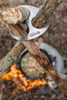 With the Petromax Tripod Lashing it is possible to set up a campfire quickly and easily for outdoor cooking adventures. The campfire cook simply has to find three branches and trim them to size before leading them through the openings in the Tripod Lashing. After making a fireplace and adding a hook a Dutch Oven or Teakettle can be hung from the tripod. The length of the chain can be adjusted to move the pot closer to the fire. The Tripod Lashing is very compact to carry and is also suitable for building a tipi, for example.