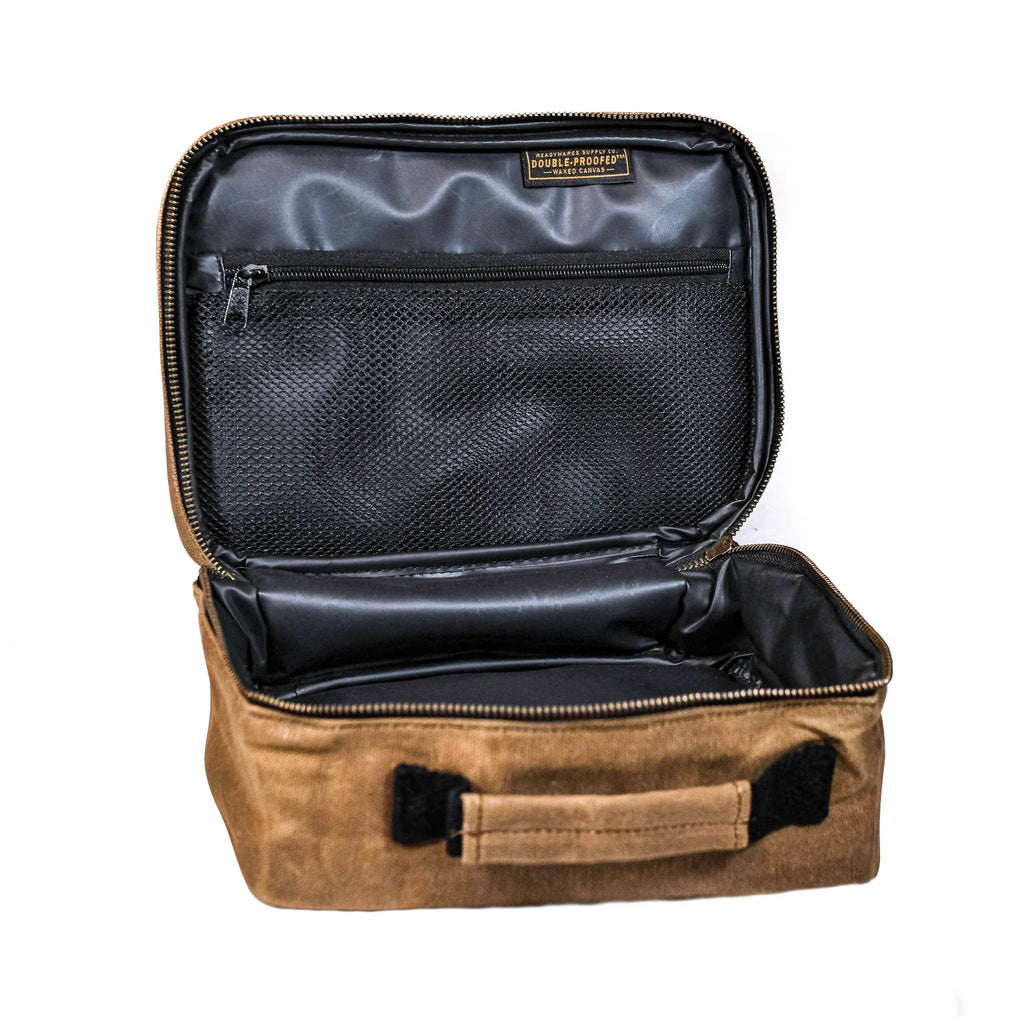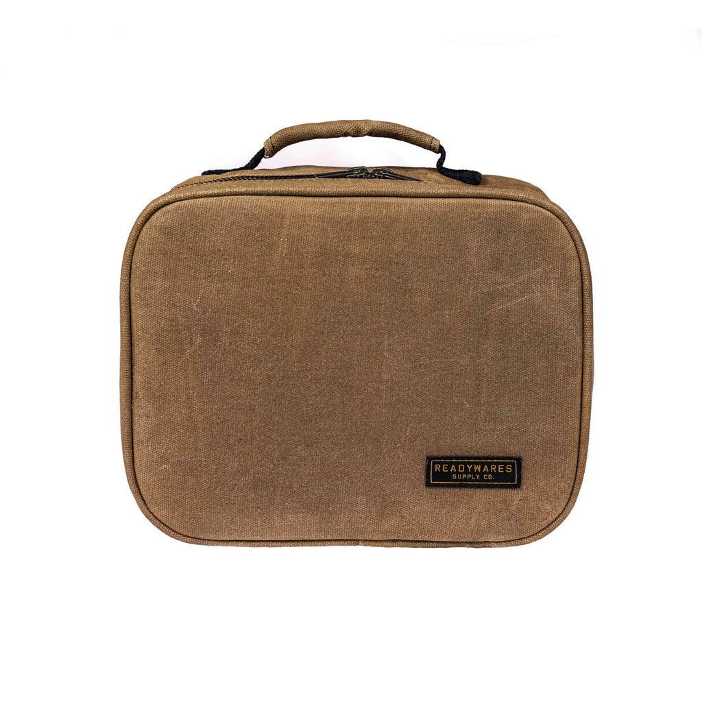 The Lunch Box by Readywares USA is constructed using a high quality 20oz waxed canvas that provides added protection against very rough treatment while giving the lunch box a timeless look. We use strong and smooth YKK zippers, an easy wipe padded liner and guarantee this bag to stand up to hard use.