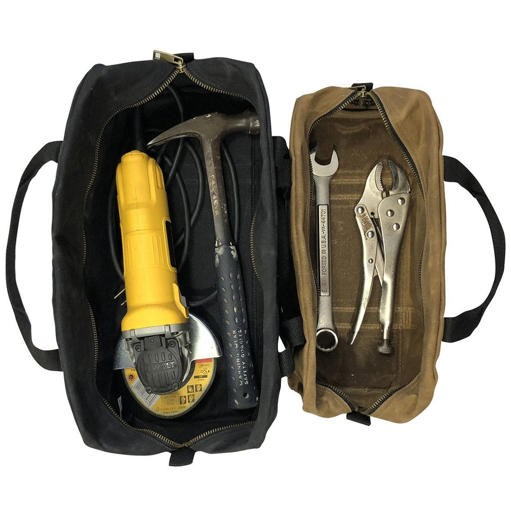 This Utility Bag 2-pack by Readywares includes 2 bags that are constructed using a high quality 20oz waxed canvas that provides added protection against liquids while giving the bags a timeless look. We use strong and smooth zippers, and guarantee these bags against defect. Useful as tool bags, hammer bags, wrench bags, cable bags, mechanic's bags, etc.