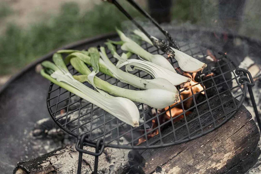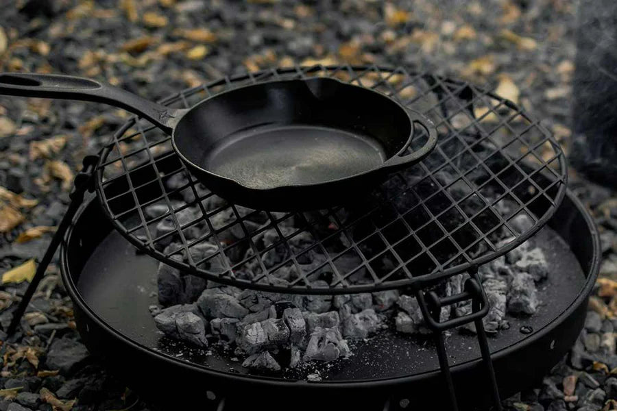 Transform your campfire into a wood-burning grill with our compact Circular Fire Pit Grill Grate. Crafted with high-temperature coated steel and folding legs for easy transport. Grill directly on mesh or use to support pots and skillets. Place over wood or coals.